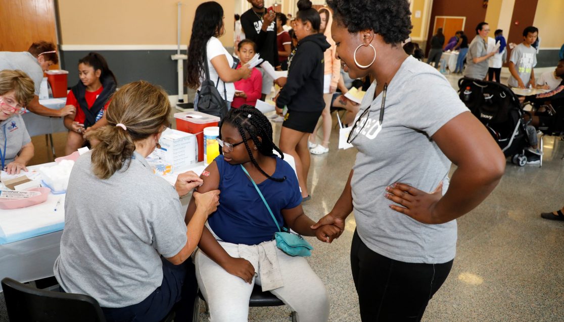 In addition to offering sports physicals, volunteers form partnering organizations provided dental and vision screenings, support for insurance applications, and access to free immunizations like TDaP, HPV9 and MCV4 which are required for middle school and high school attendance. According to event co-organizer Fahren Johnson, GTCF Expanded Learning Program Manager, addressing these needs is a key part component of our community’s Whole Child partnership. “You can’t have a Whole Child without making sure that they’re healthy. A student’s ability to learn can be directly impacted by health issues, so if we can find that out in advance we can figure out how to help. We can’t take care of everything, but we can catch things early, point families to additional resources, and help promote prevention and good habits which students will hopefully carry on as adults.”