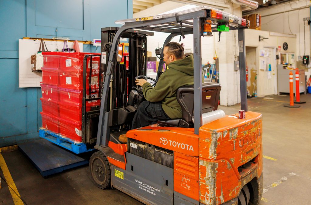 Michelle explained the importance of having enough storage space to receive, repackage, and store donations to meet Pierce County’s food support needs, “What EFN does is take in food in volume. When a big company donates, they’re looking for an organization that can receive it by the semi-truck, not by the case. If we were to bring in donated bananas or pineapple, we might bring in 24 pallets at a time.”