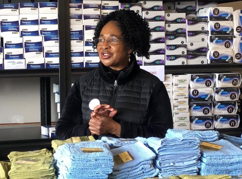 Sharon Chambers-Gordon was first exposed to the issue of “Period Poverty” through her own daughter’s experience. “She was in Middle School when it happened for the first time, and she didn’t have any supplies with her.” Luckily the school nurse had a few sanitary napkins, but the nurse told Sharon it wasn’t something that the school always kept stocked, “People drop items off from time to time, but it’s not something they always have on hand.”