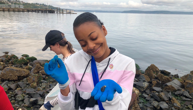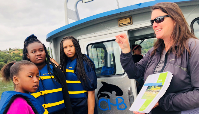 The Environmental Justice Camp was a new opportunity T’wina developed, an addition to the fun, educational programming she offers girls of color through her program, Ladies First. “I believe in the power of exposing young people to things that can change their lives forever.  So if I want more girls to be thinking about science and STEM or believing that they can be a chemist, a biologist, or something in that field then I want to do my part by putting it in front of them.” She brought the idea to life through a Spark Grant from GTCF and a partnership with Citizens for a Healthy Bay.