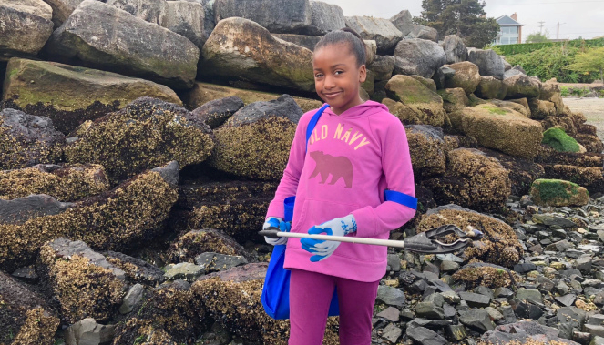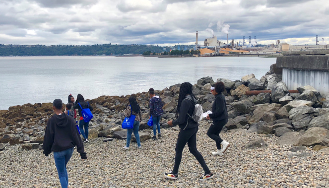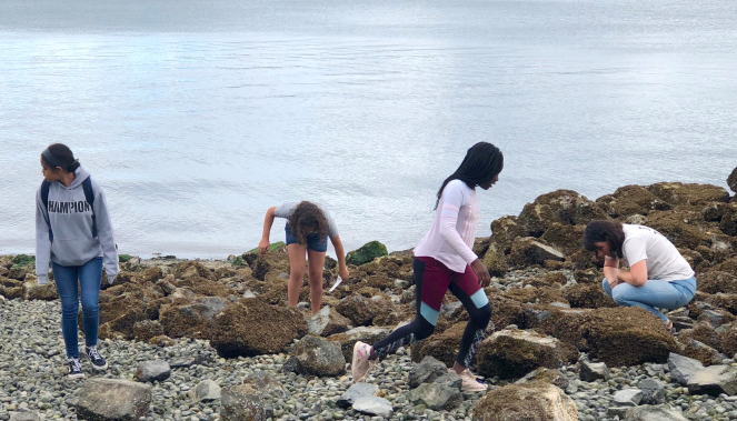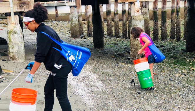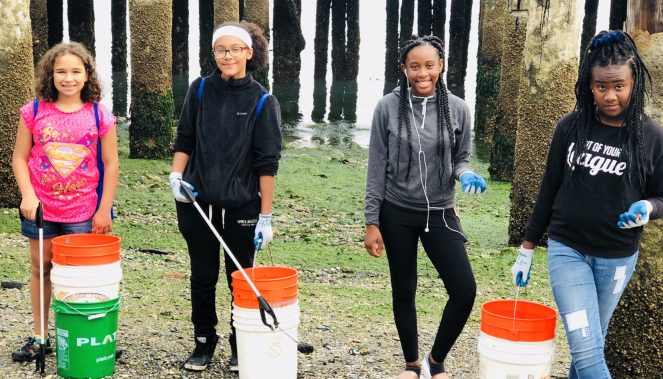 Citizens for a Healthy Bay’s Executive Director  Melissa Malott and  Project Manager Erin Dilworth gave campers the opportunity to learn from women leading environmental justice work locally.  Over the course of the two-day camp, the girls cleaned up beaches together, learned about microplastics, explored the Foss Waterway, conducted labs, created an art project, and went out on a boat to patrol Commencement Bay.  The culminating project was writing a “Letter to the Editor” to explain what they learned and describe a change they would like to see.  Several wrote about their plans to reduce their use of plastics based on their new understanding of how they impact both sea life and humans.