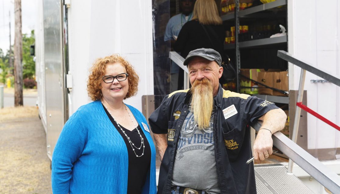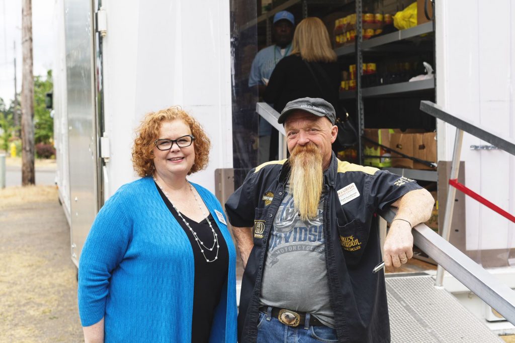 One volunteer, former Nourish board member Mike Mowatt, transformed how they get food to local areas where it is difficult to buy affordable or good-quality fresh food, “Mike has been a truck driver, owned restaurants, owned a monument business – a very smart, hardworking guy. He developed our very first mobile food bank. It goes from Bethel School District in Roy, through Tacoma and Lakewood, Tillicum, Woodbrook, and all the way out to Key Peninsula. And it wouldn’t have happened without Mike.”