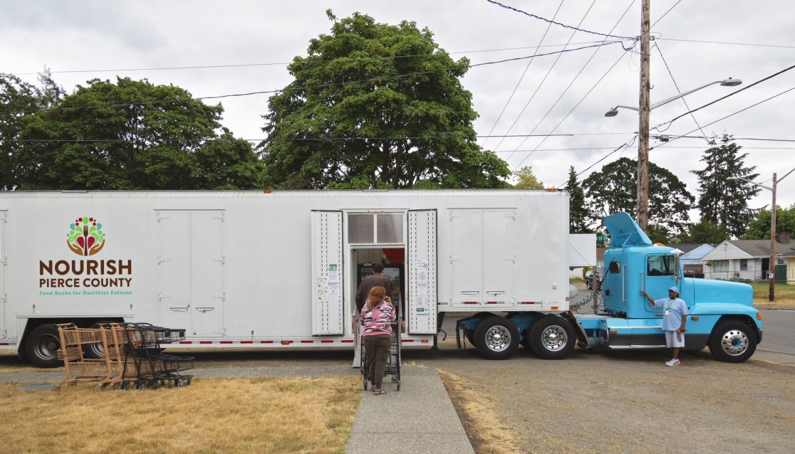 Nourish Pierce County feeds 74,000 people in Pierce County through innovative services which Executive Director Sue Potter credits to partnerships, “This place wouldn’t function without partnerships. First and foremost are volunteers. That is a huge partnership.”