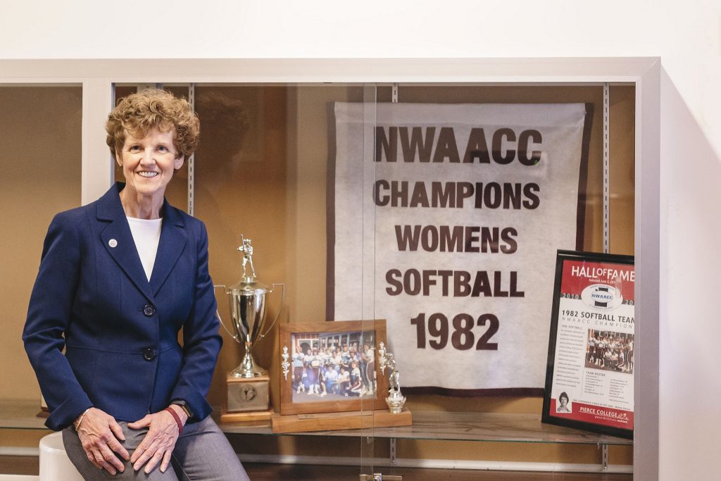 Michele started as a part-time adjunct faculty member for Pierce College at Joint Base Lewis McCord teaching criminal justice in 1977, “and there wasn’t another woman doing any of that. I was 24.  “I will always at heart be a coach. When I was starting out, I had a student, a young woman, who played on the sports team. I went out to watch them and they were terrible. And I had played ball – basketball and fast pitch.  “So I went to the associate dean. I said, maybe I could coach. And I did it for five years. “And we had the first major conference championship team. We were inducted in the hall of fame – fast pitch.