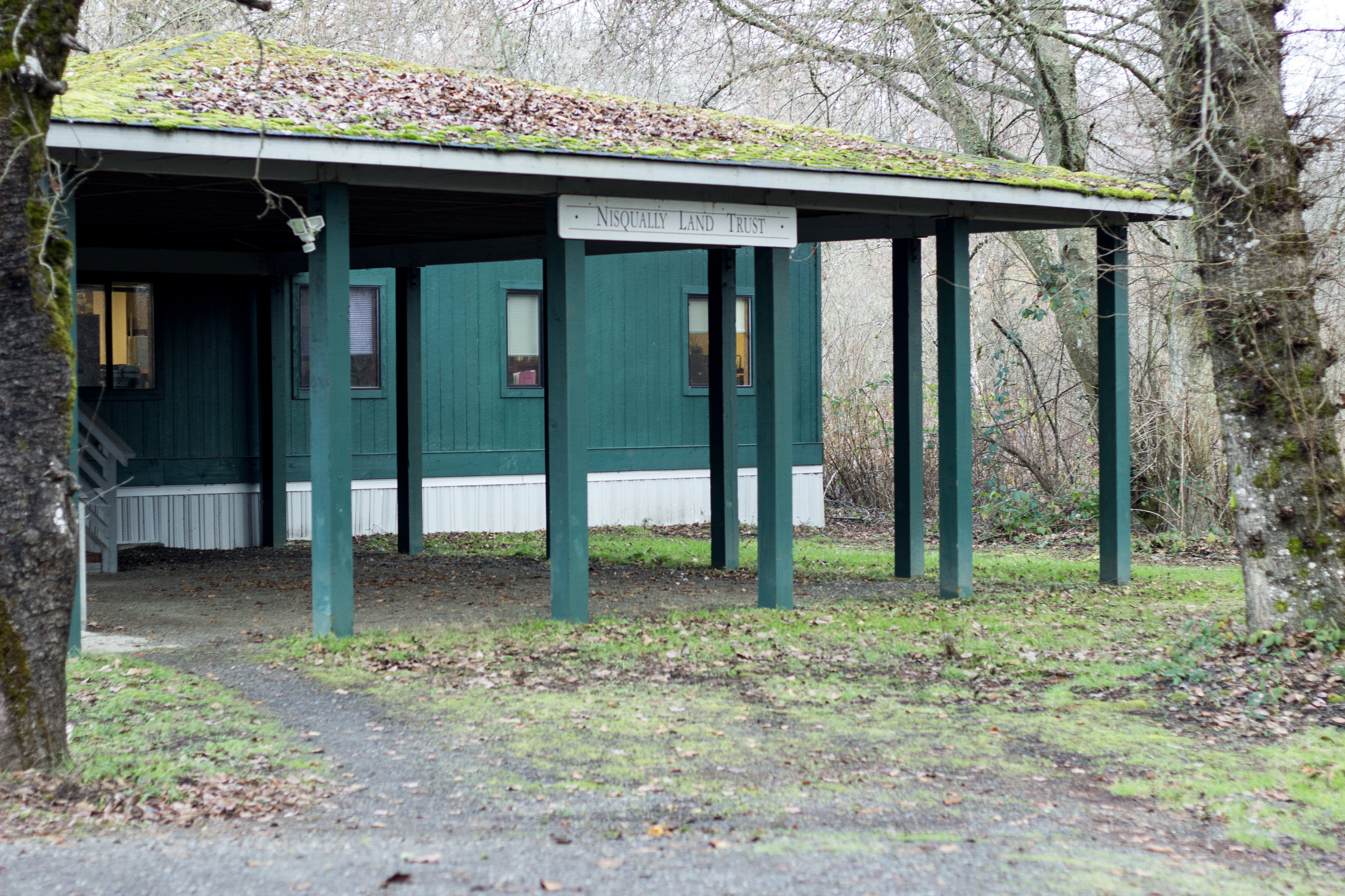 Nestled in a small corner of the Billy Frank Jr. Nisqually National Wildlife Refuge, the Nisqually Land Trust headquarters blend into the forest with weathered wood-plank walls and a moss-covered roof. It looks like the perfect setting for an agency dedicated to acquiring and managing critical lands to permanently benefit the water, wildlife, and people of the Nisqually River Watershed.