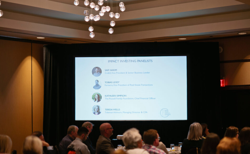 The other panelists included Kathleen Simpson of the The Russell Family Foundation, Saif Hakim of community development financial institution Craft3, and Teresa Wells of Tiedemann Advisors. Each of their organizations has made a commitment to impact investment in our region. Their work relies on partnership for innovation as they align financial investments with community-focused values.