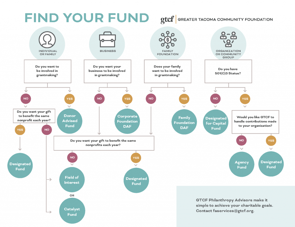 With GTCF, you get a trusted local partner with decades of experience in charitable giving in Pierce County. Your Philanthropic Advisor can help you sort through the variety of direct and planned giving options to find the best options to meet your philanthropic and charitable giving goals. - What kind of giving options does GTCF provide?